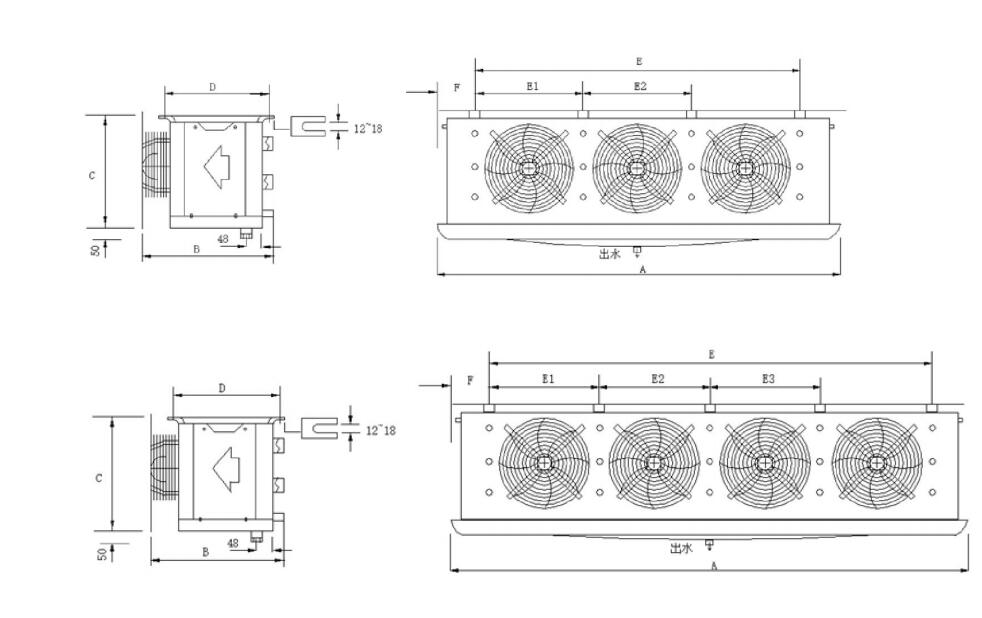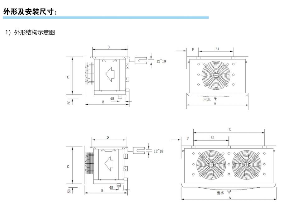 2) 采用的风机防潮湿、邮低温,全一个让能工以工,地少助时间短、效果好 3)采用不锈钢管组成的电热融霜系统,电热管直接插入盘管内,