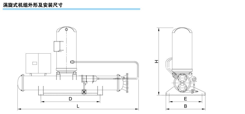 3) 水冷机组采用先进的高热流冷凝管、耐压无缝钢管、端板、端盖等组成的高效壳管冷凝器,质量可靠、性能优良